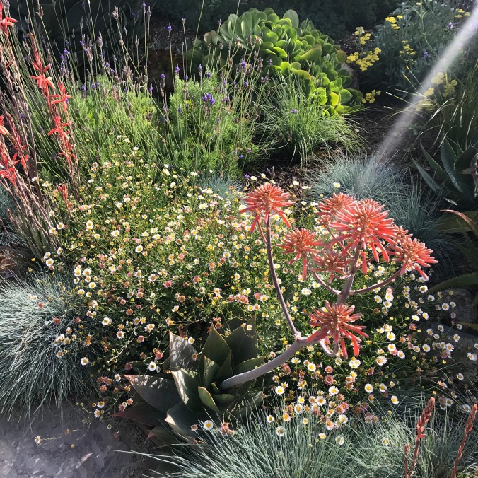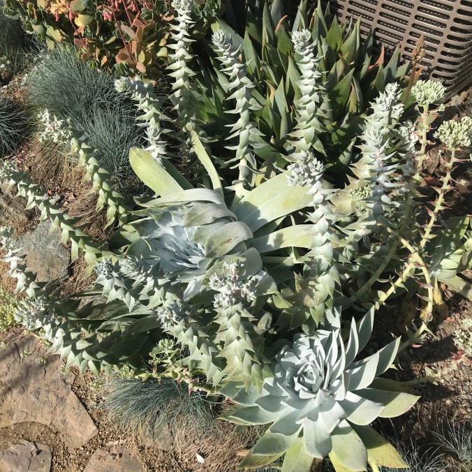It’s April 15th — time for garden bloggers bloom day. I missed last month but there’s been plenty going on. For starters, the aloes have collectively been putting on a good show, as have the Dudleyas (below).