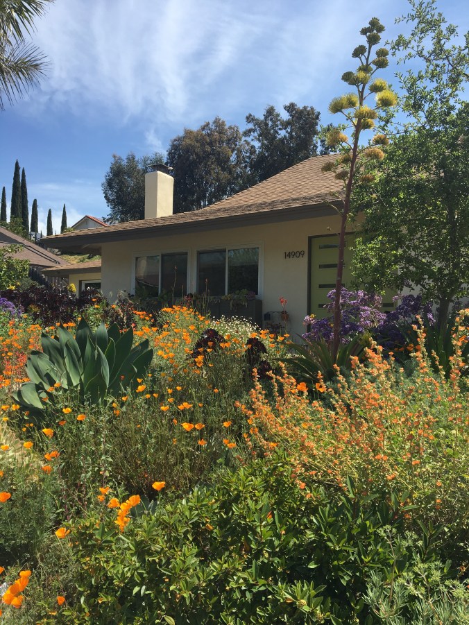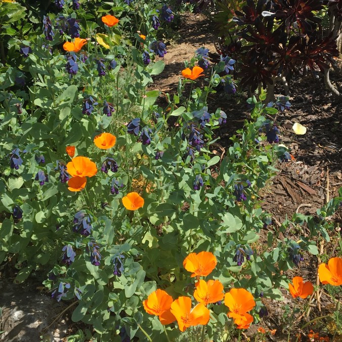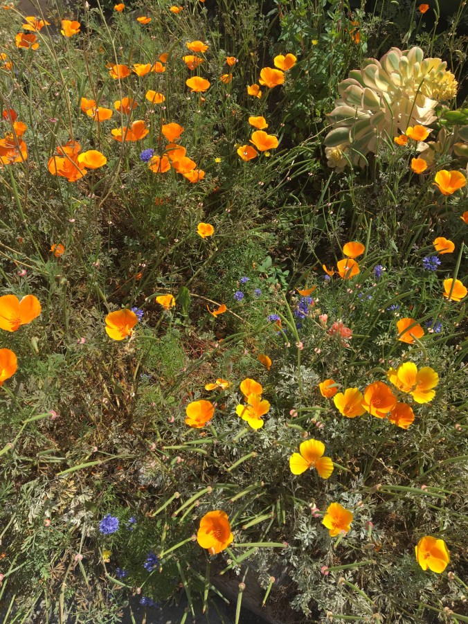 In the front, the show belongs entirely to the California Poppy, Eschscholzia californica. This year’s El Niño brought on a front yard sized superbloom of amazing color.