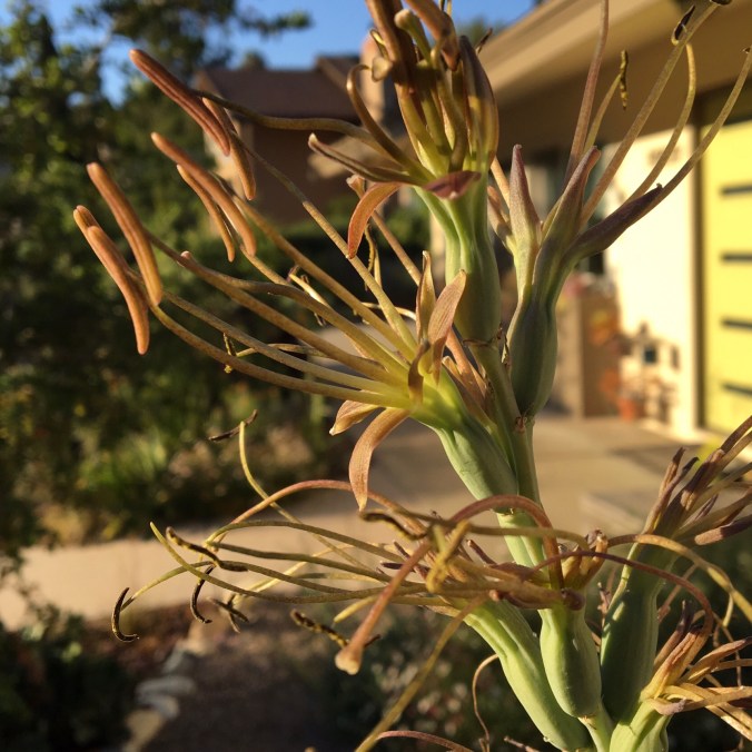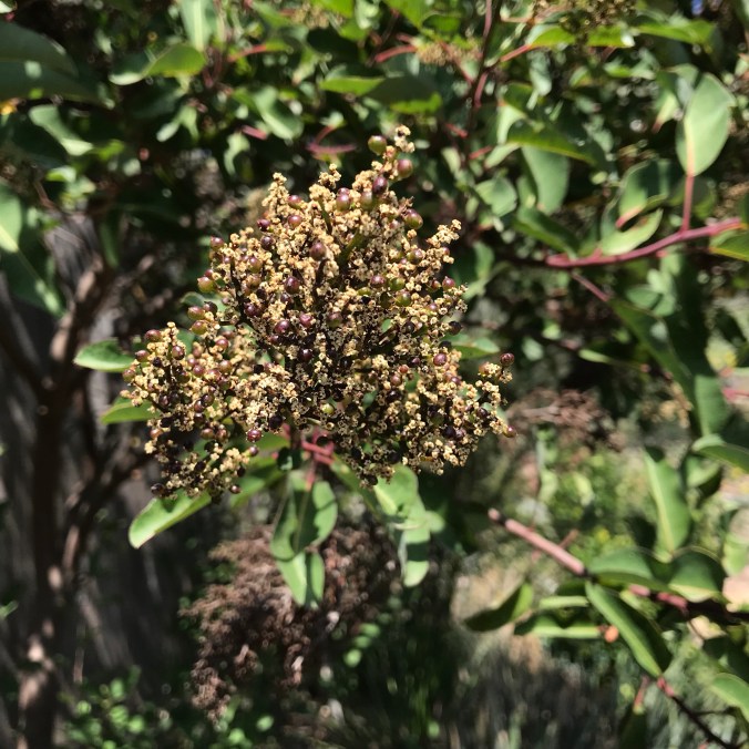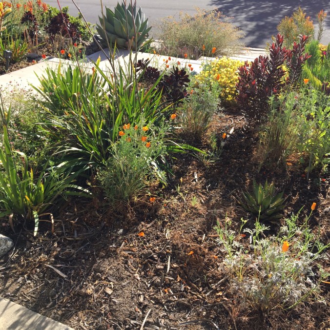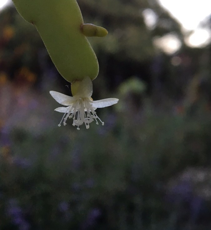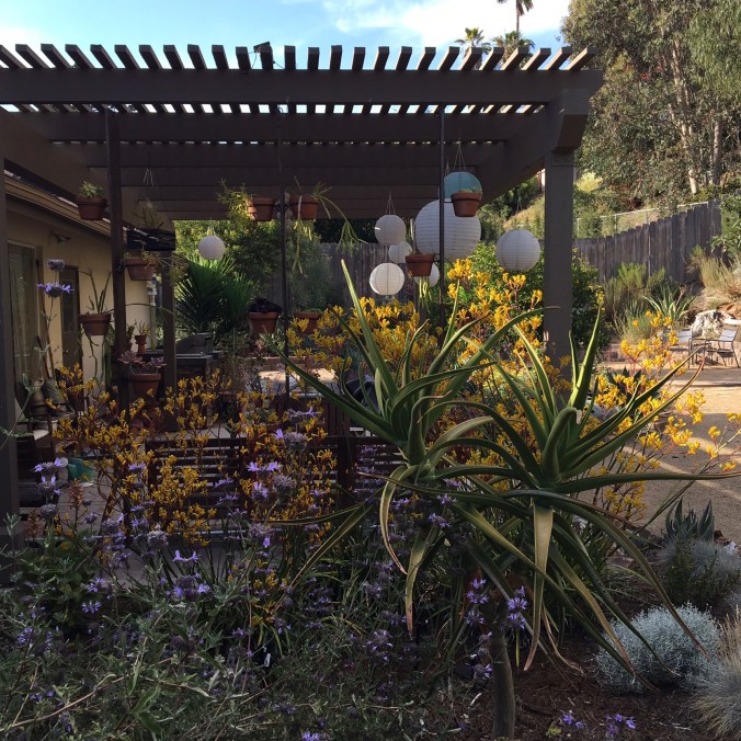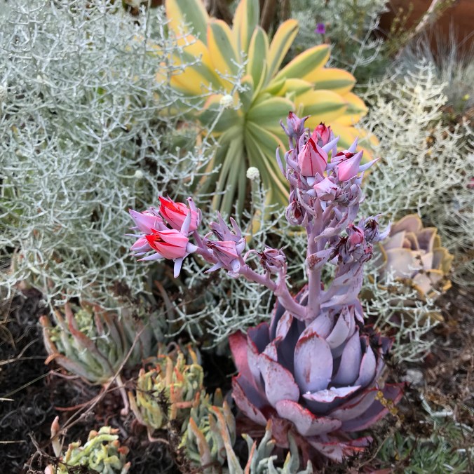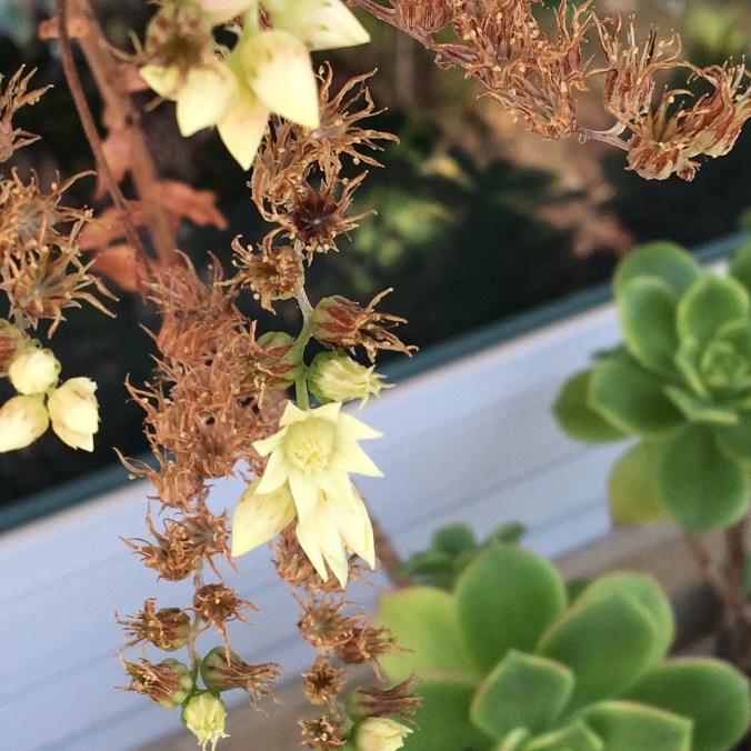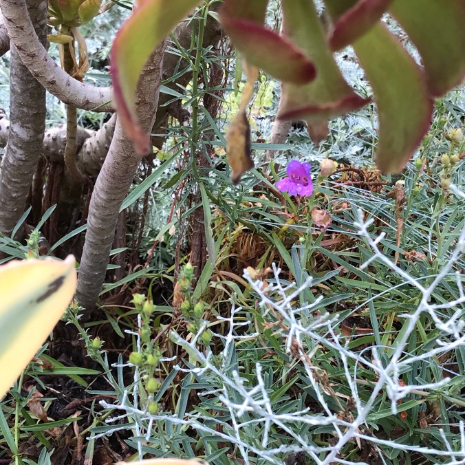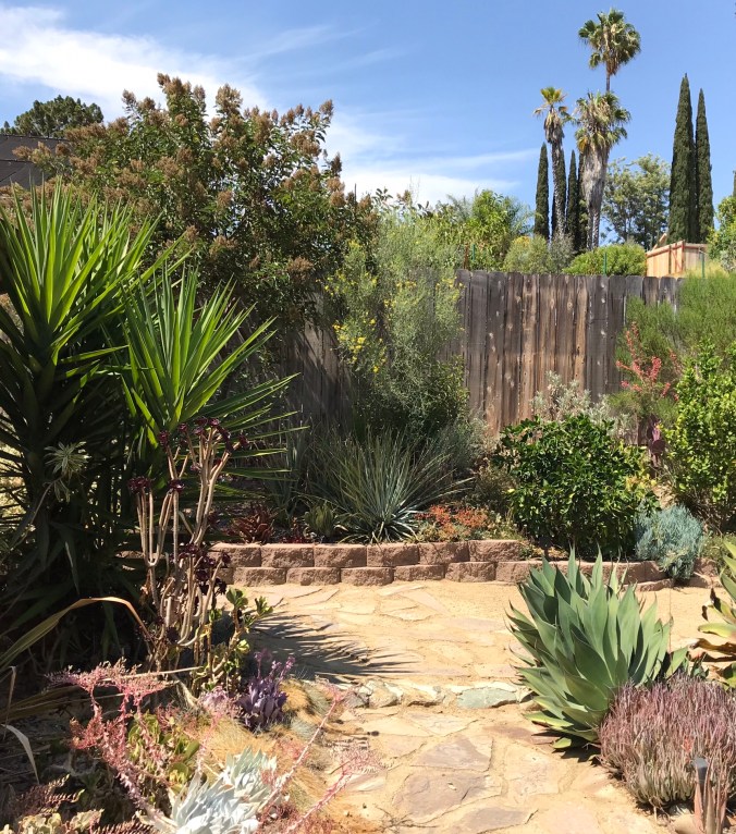 I then traced my way past the edge of the orchard to the mulberry tree (with a newly installed succulent planting below it … plants I see all over the place back home in San Diego).