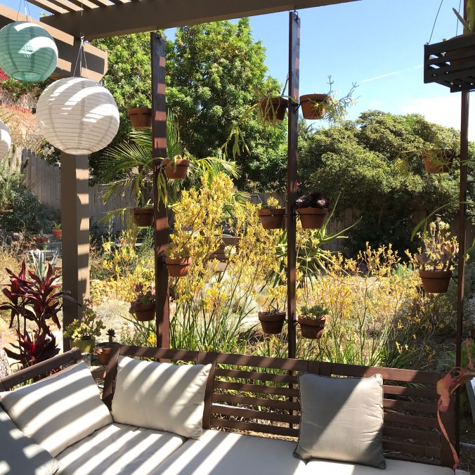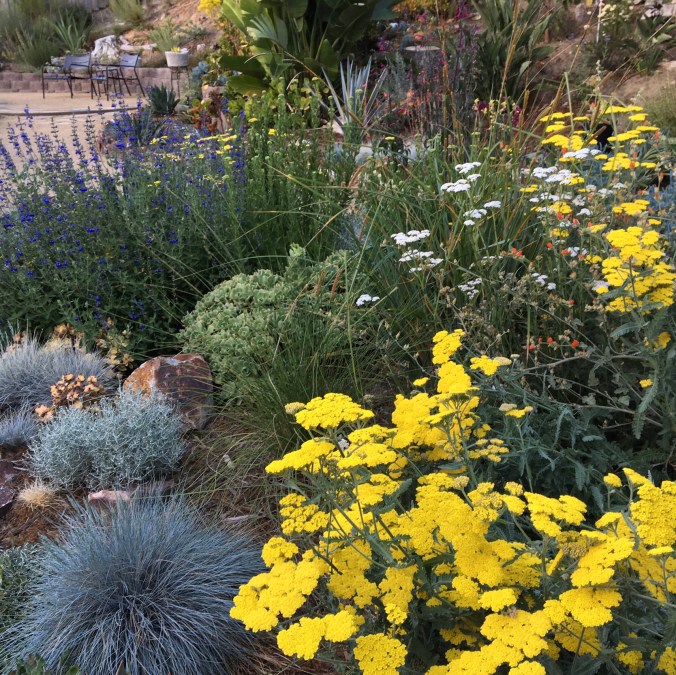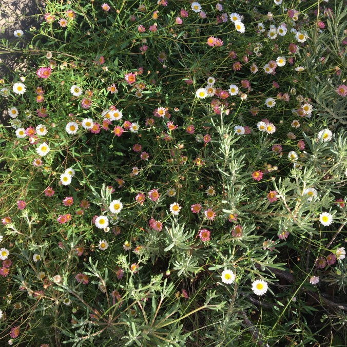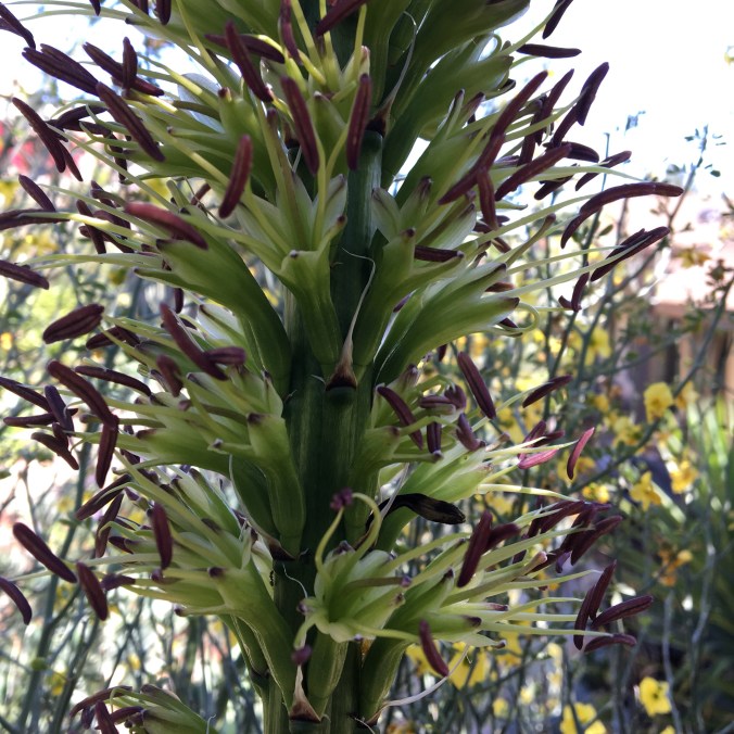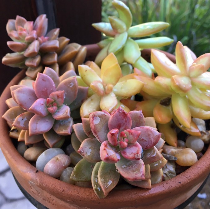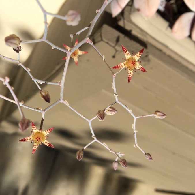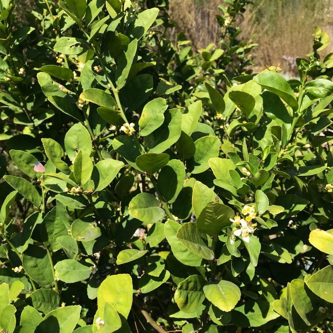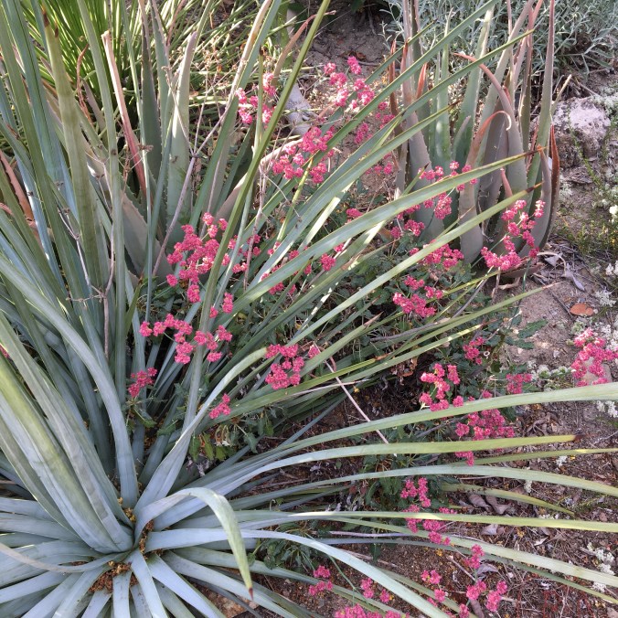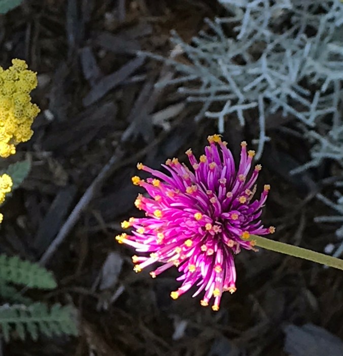 I then traced my way past the edge of the orchard to the mulberry tree (with a newly installed succulent planting below it … plants I see all over the place back home in San Diego).